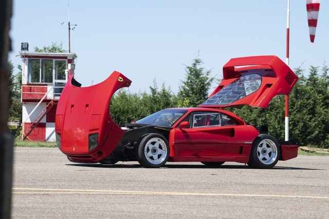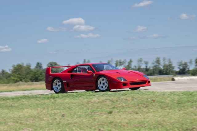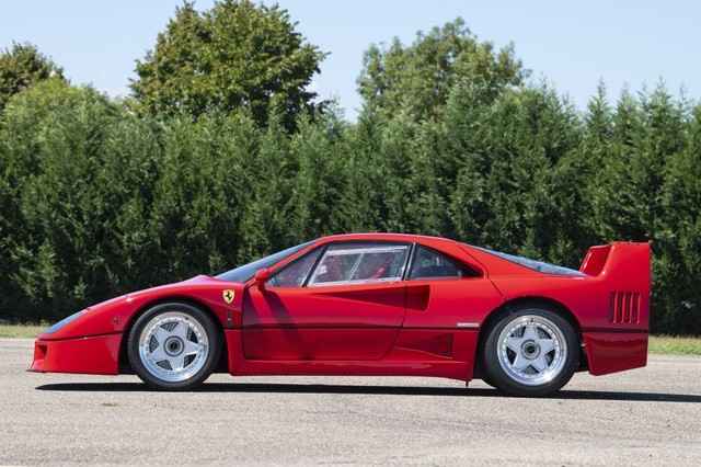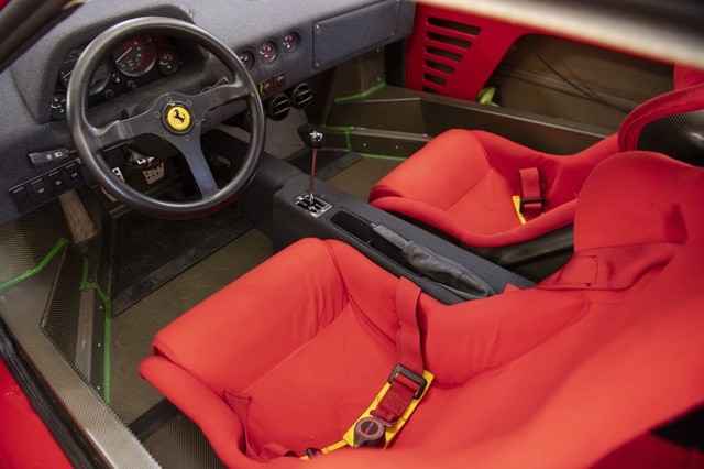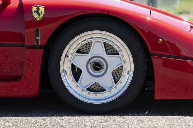 One of the most driver-focused cars of its era, the F40 had no radio, carpet, or inner-door panels and a windshield made of plastic. The body was constructed of a combination of Kevlar, carbon fiber, and aluminum. The suspension was double-wishbone, and later cars were given a hydraulic system to change the ride height. T