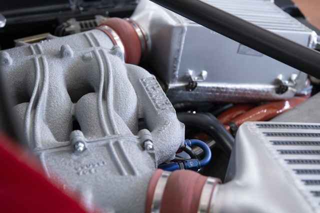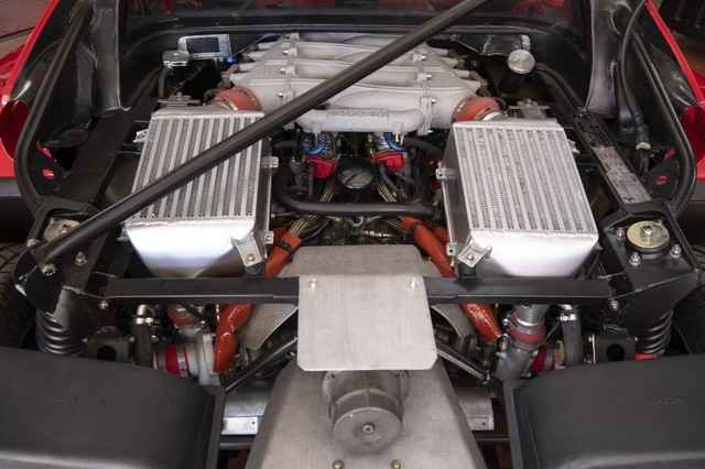 he F40 was powered by a twin-turbocharged (2.9L) V8 that is longitudinally mounted in the middle rear section of the car, driving power to the rear via a five-speed manual gearbox. The vehicle produced 471hp, launching from 0-62mph in just 4.7 seconds.