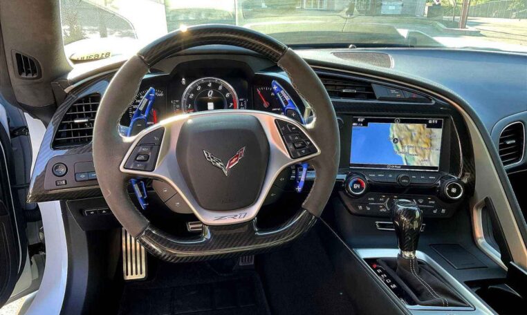 ZR1 3ZR PREFERRED EQUIPMENT GROUP: includes Standard Equipment, ZTK TRACK PERFORMANCE PACKAGE includes (FEB) Performance Ride and Handling Suspension, (XFM) front P285/30ZR19 and rear P335/25ZR20 Michelin Pilot Super Sport Cup 2 summer-only, run-flat tires, adjustable high-wing and specific front splitter end caps, SEATS, COMPETITION SPORT BUCKET, TRANSMISSION, 8-SPEED PADDLE SHIFT WITH AUTOMATIC MODES, LPO, VEHICLE COVER, FULLY RENDERED, CORVETTE C7.R PREMIUM INDOOR DUST COVER.: Genuine Corvette Accessory, LPO, PERFORMANCE AIR INTAKE, WHEELS, ZR1 CARBON FLASH-PAINTED ALUMINUM 19 x 10.5 (48.3 cm x 26.7 cm) front and 20 x 12 (50.8 cm x 30.48 cm) rear, REMOTE VEHICLE STARTER SYSTEM, REAR AXLE, 2.41 RATIO, ELECTRONIC LIMITED SLIP (ELSD), AUDIO SYSTEM, CHEVROLET INFOTAINMENT SYSTEM WITH NAVIGATION and 8 diagonal color touch-screen, AM/FM/HD stereo with seek-and-scan and digital clock, includes Bluetooth streaming audio for music and select phones; voice-activated technology for radio and phone; featuring Android Auto and Apple CarPlay capability for compatible phone (Includes (UQT) performance data and video recorder.) (STD), ENGINE, 6.2L (376 CI) SUPERCHARGED V8 DI AND PFI (STD).
